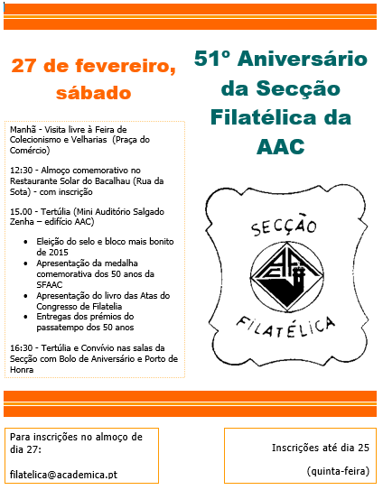- Dia 5 de Março de 2016 na sala Tsar do Tsar Lisbon Hotel pelas 10:30 realizará-se a primeira chamada para a sessão extraordinária para eleição da Direção da Federação Portuguesa de Filatelia;