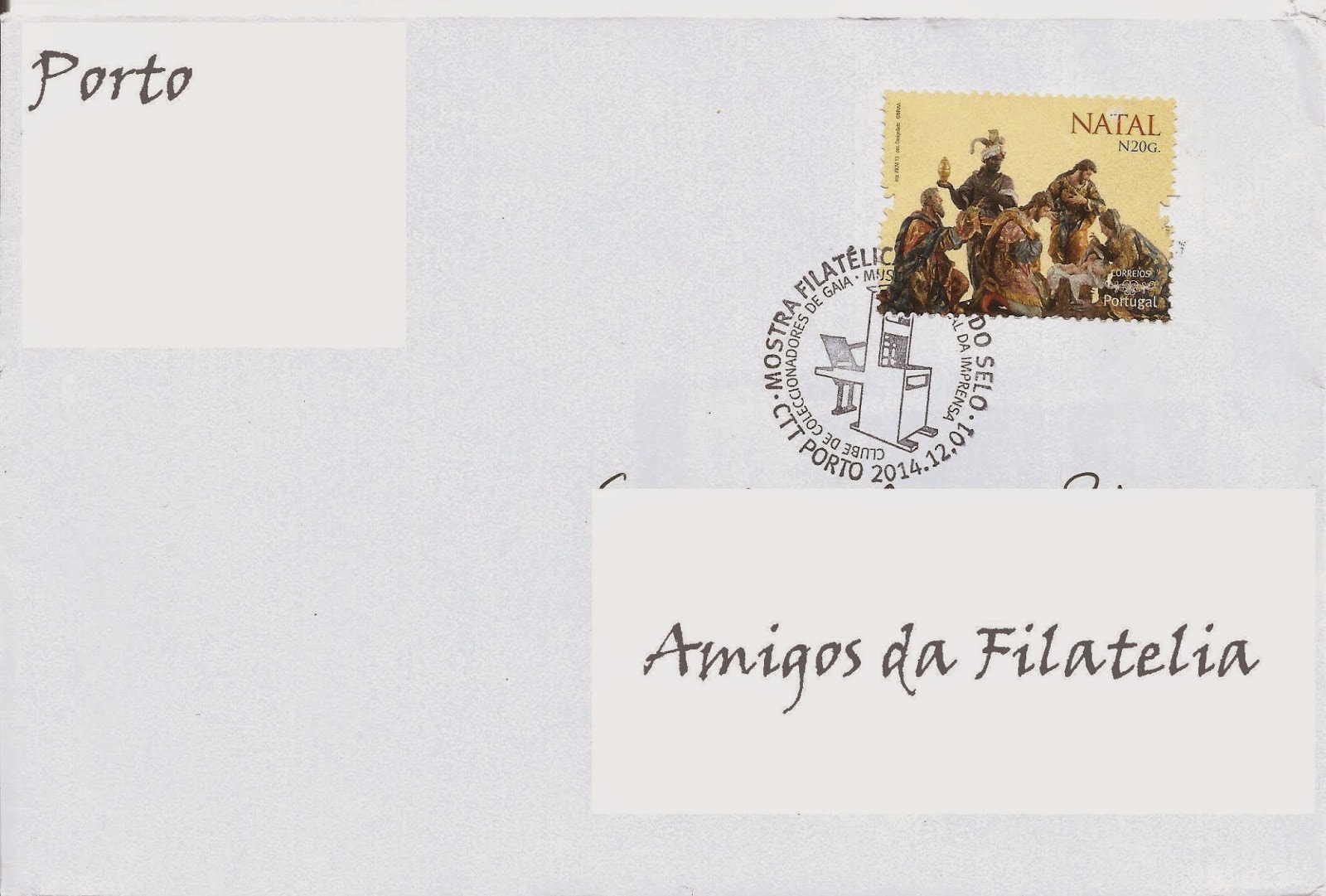 aqui vos deixamos a imagem de um sobrescrito que circulou do Porto para Estoi e no qual foi aposto o carimbo comemorativo alusivo ao dia do selo, comemorado desta feita no Porto, nomeadamente no Museu Nacional de Imprensa e organizada pelo Clube de Coleccionadores de Gaia.